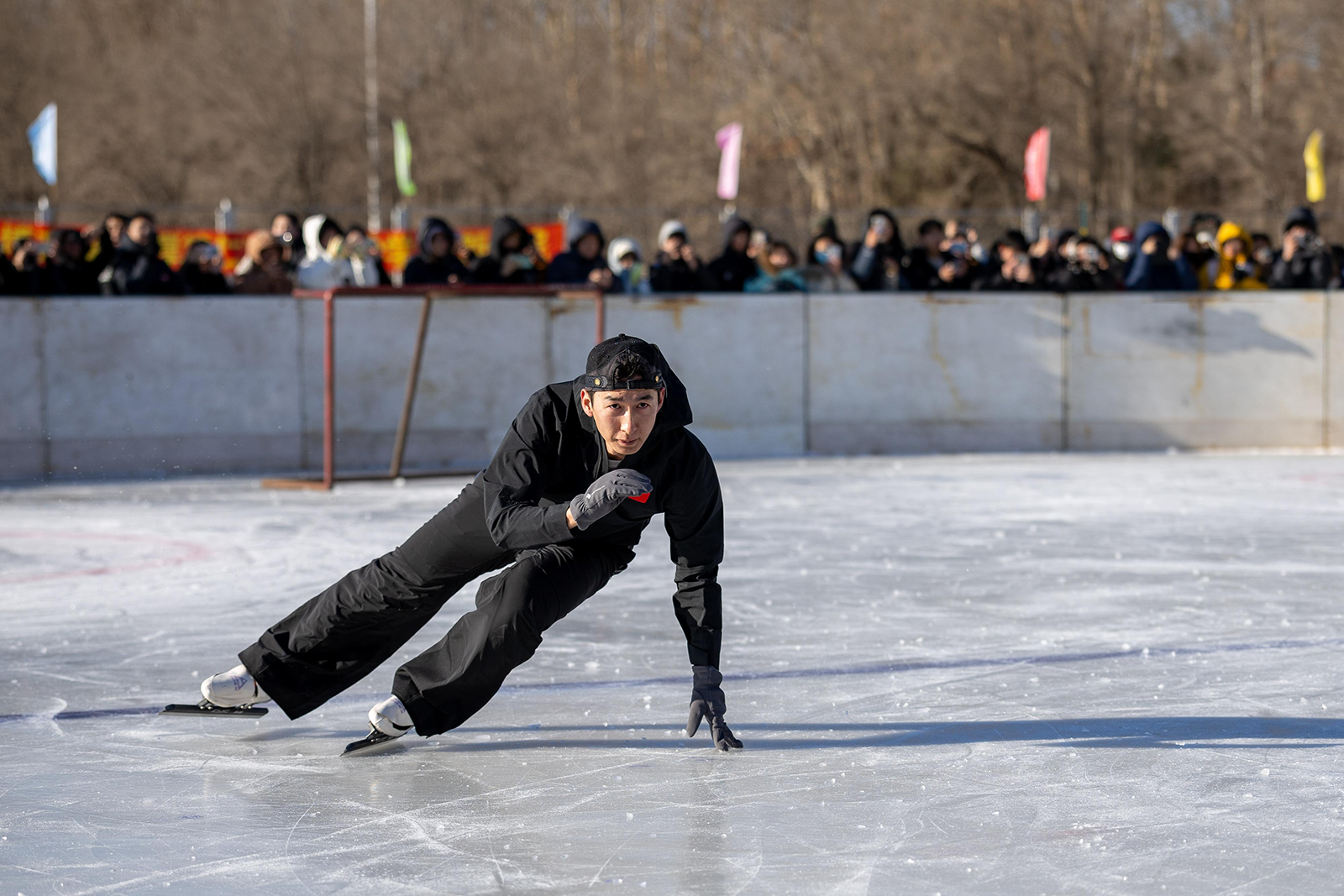 “单蹬双滑练习,单蹬单滑练习。”冰雪微专业学生在大靖老师的示范和引领下逐渐从步履蹒跚到顺畅滑行,体会到了滑冰运动的乐趣 。从短道速滑跨项速度滑冰的亲身经历,让大靖老师更懂不同学员的适配性训练方法 。遇到动作僵硬的学员,他则用“把冰刀当成自己的脚”这样生动的比喻拆解技巧,还现场演示了短道速滑完整的技术动作特别是经典弯道蹬冰动作,冰刀切入冰面的瞬间,惊鸿一瞥的身姿,尽显世界冠军的专业气场。
