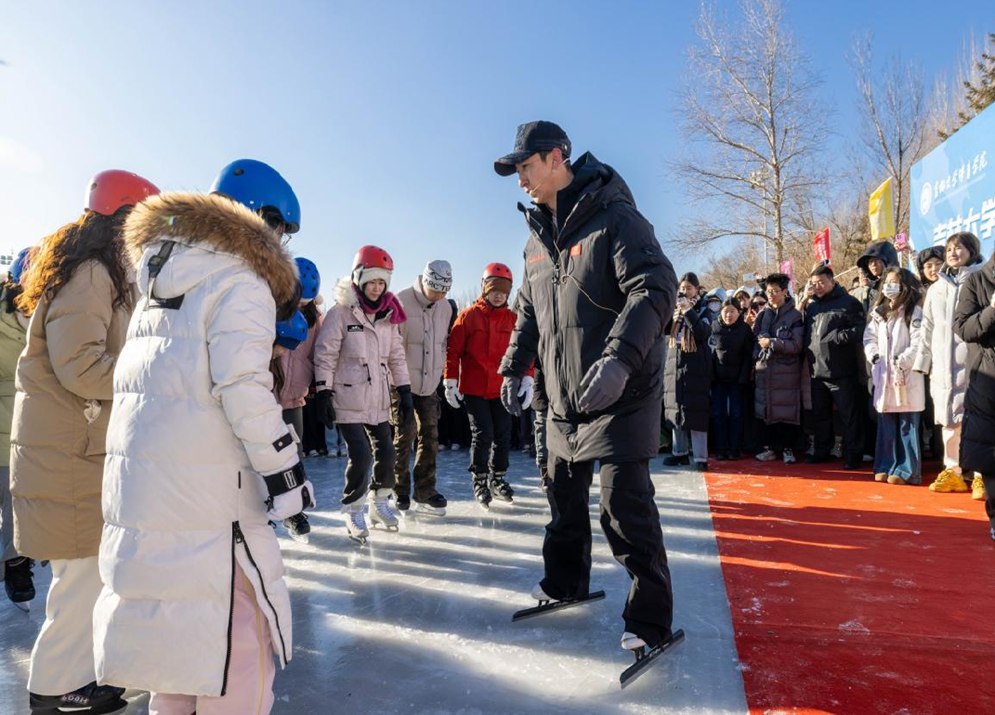 12月11日 ,在吉林大学体育学院冰雪运动微专业开班仪式结束后 ,这位手握124枚奖牌、世界记录的保持者,化身最接地气的教师,带着来至不同专业,不同年级冰雪运动微专业的同学们从基础动作学起 ,把赛场上的拼搏果敢与专业技艺,倾囊传授给每一位冰雪运动微专业的同学们。