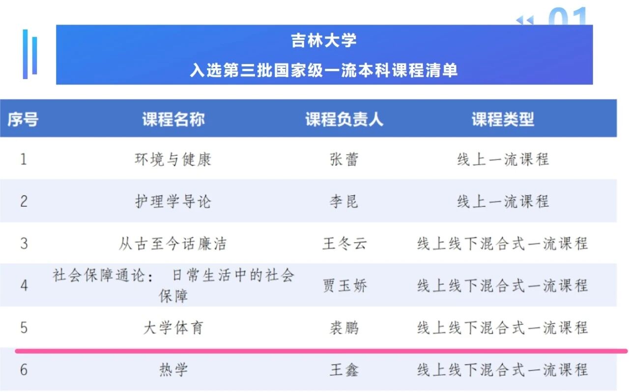 近日,教育部公布第三批国家级一流本科课程认定结果。由吉林大学体育学院院长裘鹏教授负责的《大学体育》课程,成功入选“线上线下混合式一流课程”,成为学校在体育教学改革领域取得的又一重要阶段性成果。